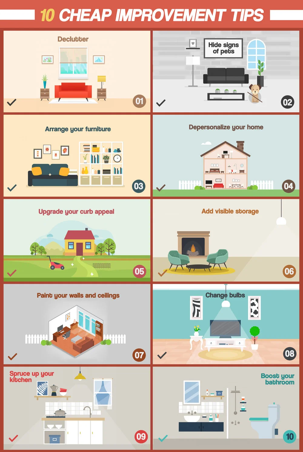 You might be dreading the idea of improving your home because it might cost you a fortune. Don't fret! This list will enlighten you that simple and easy measures which you can do yourself will make a big (and positive!) difference in your home. You can ask your agent how to stage your home best, but it won’t hurt to get a headstart on making your home as presentable as it may be – without having to spend thousands of dollars.